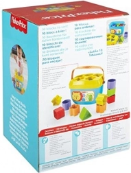 Deset izrazito barvitih delov in pokrov z izrezi pomagajo otrokom naravno razlikovati oblike in barve pri vsakem poskusu pravilnega vstavljanja.