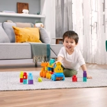 Barvne kocke s črkami spodbujajo prepoznavanje oblik črk in prvo sestavljanje besed. Otroci naravno razvijajo besedni zaklad in logično razmišljanje.