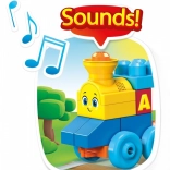 Odkrijte veselje do učenja z glasbenim vlakom s črkami MEGA BLOKS. Otroci lahko povežejo tri vagončke, naložijo barvne kocke s črkami in se ob sestavljanju vlaka igrivo učijo abecede in prvih besed. Interaktivni dimnik dodaja zabavne zvoke vlaka in veselo pesmico, ki ohranjata pozornost in spodbujata čutno zaznavanje.