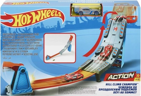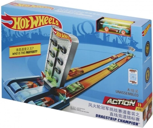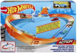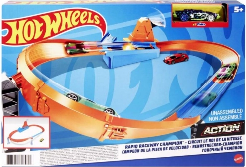 Odkrijte adrenalinski dirkalni set, v katerem se mladi vozniki pomerijo v 3 disciplinah: drift krogu s stranskim startom, vzporednih dirkah z odštevanjem in vzponu v klanec z jedrskim izstrelkom. Zahvaljujoč modularnemu sistemu lahko set kombinirate z drugimi progami HOT WHEELS in ustvarite svoj veličasten svet hitrosti.