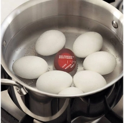 Ta edinstven časovnik za jajca vam omogoča, da kuhate jajca natančno do trdote, ki jo želite. Preprosto ga postavite v lonec z jajci in opazujte barvne spremembe na posebni lestvici: