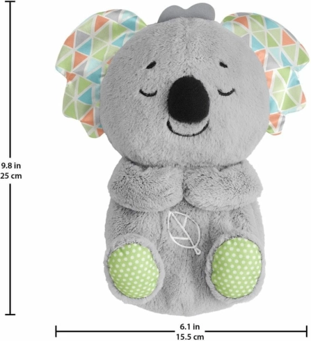 Ljubka plišasta koala znamke Fisher-Price pomaga dojenčkom zaspati zahvaljujoč realističnemu ritmu dihanja, pomirjujoči glasbi in zvokom narave ter nežni večbarvni svetlobi na trebuščku. Mehko igračo je enostavno vzdrževati – po odstranitvi elektronike je pralna v pralnem stroju, njene raznolike teksture za razvoj čutov pa pritegnejo majhne ročice.