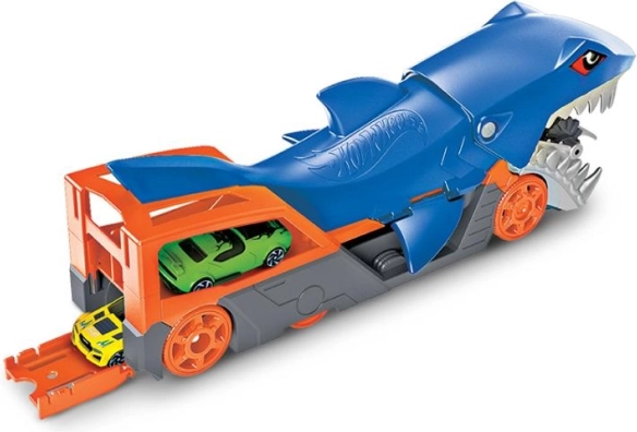 Zabavni transporter Hot Wheels v obliki morskega psa spremeni pospravljanje v igro – med vožnjo avtomobilčke dobesedno »pogoltne« v trebuh, kjer so varno shranjeni. Sprejme do 5 vozil v merilu 1:64, ima zadnjo preklopno rampo za enostavno razkladanje, priložen je 1 avtomobilček HOT WHEELS. Odlična darila za otroke od 4 do 8 let in super način, kako shranjevati in prevažati zbirko.