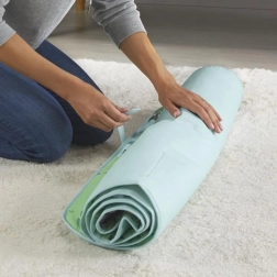 Podlogo preprosto zvijete in pritrdite s trakovi za udobno prenašanje. Vzdrževanje je preprosto – material je primeren za pranje v pralnem stroju.