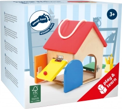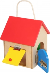 Odkrijte igrivo hišico z zaklepkami iz 100% FSC lesa, ki otroke uči odpirati različne vrste ključavnic in zapahov. Kompaktna velikost, priročen ročaj za enostavno prenašanje in živahne barve spodbujajo fino motoriko, zbranost in radovednost otrok od 3. leta dalje.