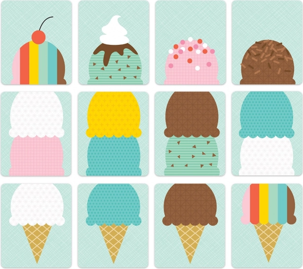 - 52 ilustriranih kart, 4 sladoledni tovornjački