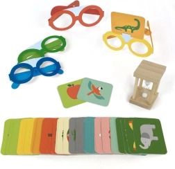 V pakiranju je vse, kar potrebujete: 4 nastavljiva očala z držalom za kartice, 50 trdnih kart z ljubkimi ilustracijami in peščena ura za tempo igre. Kakovostna izdelava iz recikliranega papirja in tisk z rastlinskimi črnili izpolnjujeta vse varnostne standarde.