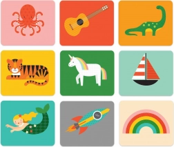 Barvite in jasne slike živali, predmetov in prevoznih sredstev olajšajo ugibanje tudi mlajšim igralcem.