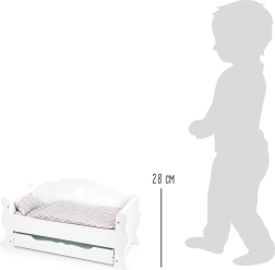 Bela lesena posteljica za punčke Small Foot je idealen dodatek za vsako malo princesko. Z robustno konstrukcijo in elegantnim dizajnom nudi udobje punčkam in plišastim igračam. Funkcionalno jo je mogoče spremeniti v majhno zofo, z dodatnim predalom za shranjevanje.
