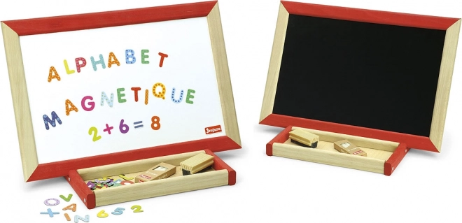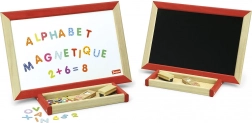 Večnamenska namizna tabla za otroke ponuja zabavo in učenje. Dvostranska, magnetna, z leseno osnovo, po kateri lahko rišete s kredo ali posebnimi flomastri.