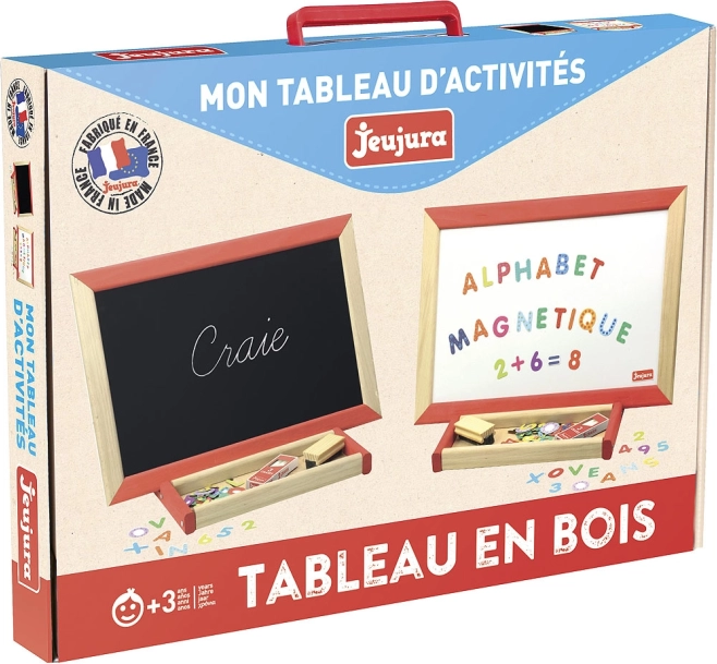 Lesena, večstranska tabla Jeujura je idealna izobraževalna igrača za malčke. Izdelana iz masivnega bukovega in borovega lesa francoskega izvora, zagotavlja visoko kakovost in okolju prijazno proizvodnjo. Ključne lastnosti:
