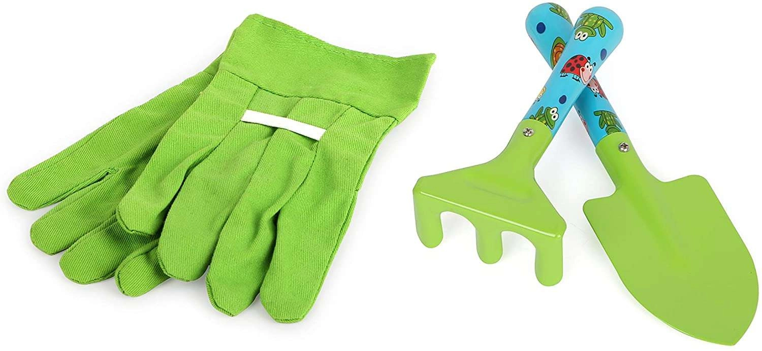 Dolga orodja so približno 70 cm za udobno grabljenje in kopanje, krajša ročna orodja merijo približno 15–20 cm. Zahvaljujoč ergonomskim ročajem in otroški velikosti se orodja dobro držijo in spodbujajo pravilne navade pri delu na vrtu. Set otroke motivira k aktivnemu gibanju, učenju odgovornosti in skupnim trenutkom s starši.
