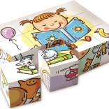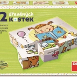 Odkrijte veselje do sestavljanja s kakovostnimi lesenimi kockami iz Češke. Komplet 12 kock z motivi vsakdanjih dejavnosti služi kot 3D sestavljanka in gradbeni komplet za stolpe in gradove. Spodbuja fino motoriko, domišljijo in ustvarjalno igro. Izdelano iz češkega smrekovega lesa, varno in odporno.