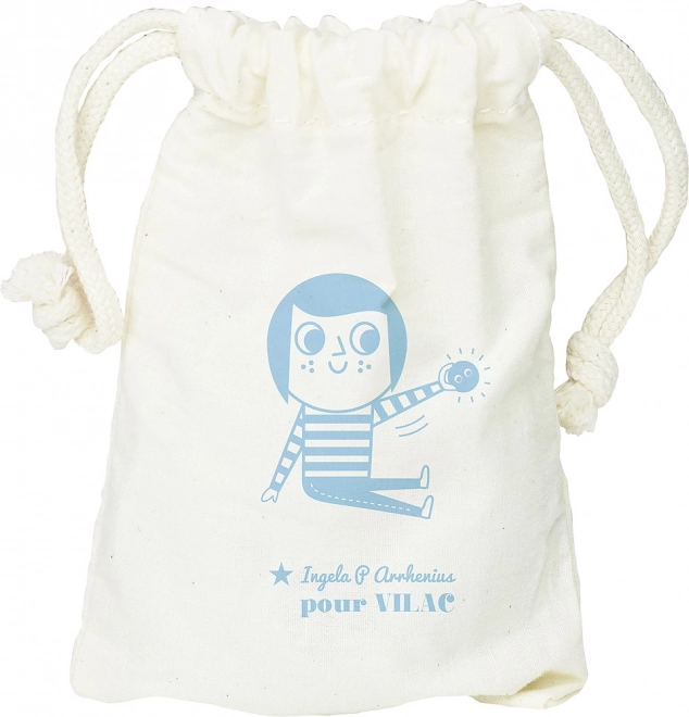 Ljubek lesen zajček deluje kot ropotulja in rumba krogla v enem. Ilustrirala ga je slovita švedska umetnica Ingela P. Arrhenius, izdelek je izdelan v Franciji in navduši s svojo kakovostjo ter dizajnom.