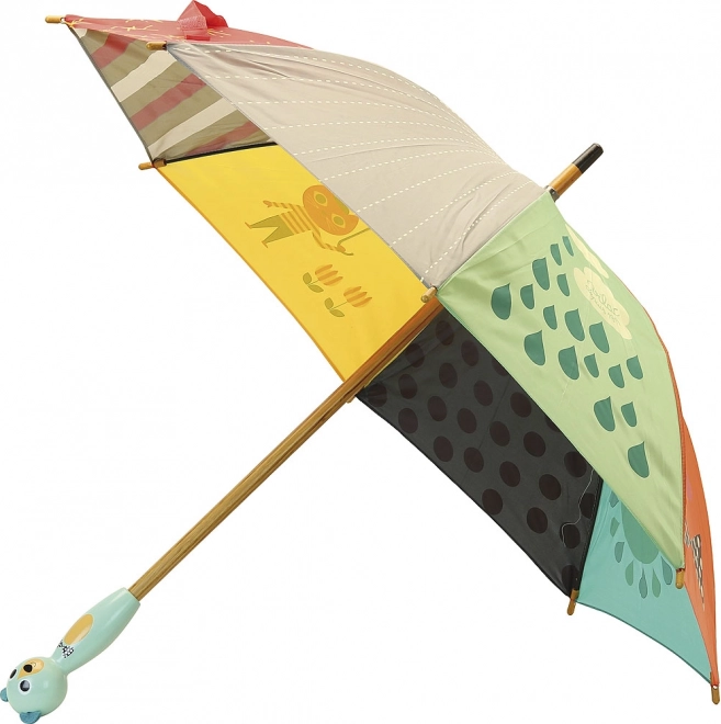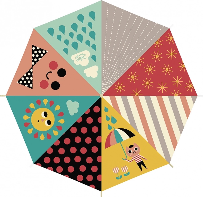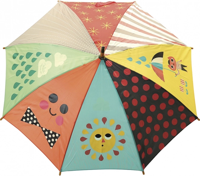 Dežnik je izdelan v Franciji iz kakovostnih materialov s poudarkom na varnosti in udobju malih uporabnikov. Ergonomski lesen ročaj dobro leži tudi v drobnih otroških rokah, gladko odpiranje pa olajša samostojno uporabo.