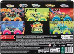 Odprite škatlo in takoj lahko dirkate, trčite in izvajate trike. Ta bogat komplet prinaša 10 vozil v merilu 1:64 – pet robustnih monster truckov in pet hitrih avtomobilčkov Hot Wheels. Zaradi svetlečih elementov bodo vaši kaskaderski podvigi izstopali tudi ob mraku ali v temi.