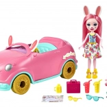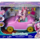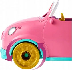 Set Enchantimals Zajčji voz ponuja neskončno veliko zabave in pustolovščin z Bree Bunny in njenim zajčjim prijateljem. Ta impresivni roza voz z zajčjimi ušesi in dekorativnimi cvetovi je stilska igrača za vsakogar. Zlata kolesa dajejo vozilu izjemen videz, medtem ko odprt prtljažnik omogoča shranjevanje pomembnih stvari kot je krema za sončenje v škatlici.
