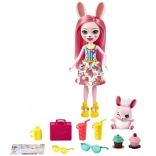 Lutka Bree z dolgimi roza lasmi in zajčjimi ušesi je pripravljena na potovanje. Njena obleka vključuje poletno obleko s cvetličnim tiskom, čevlje in sončna očala.