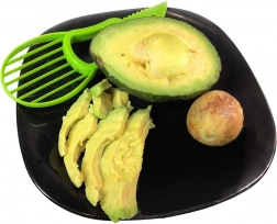 Plastično rezilo gladko prereže avokado, ne da bi poškodovalo sredico. Ergonomična oblika zagotavlja zanesljiv oprijem in natančne reze.
