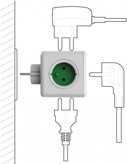 PowerCube Original je pametna in kompaktna rešitev za situacije, ko vam primanjkuje vtičnic. Njegove strateško razporejene vtičnice preprečujejo, da bi se veliki napajalni adapterji prekrivali in blokirali druga mesta. Razdelilnik je odlična izbira za kuhinjo za hkratno priključitev kavni aparata, grelnika vode, mešalnika ali toasterja, prav tako pa za dnevno sobo za TV ali pisarno.