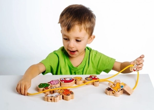 Nizanje različnih oblik pomaga otrokom izboljševati koordinacijo rok in oči.