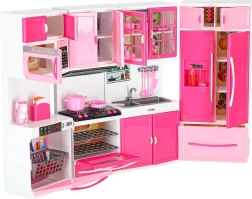 Ta moderna kuhinjica za punčke otrokom prinaša svet domišljije in posnemanja vsakodnevnih dejavnosti. Štirje povezani segmenti omogočajo sestavo popolne kuhinje z vsemi pomembnimi elementi – od štedilnika s pečico do hladilnika in korita. LED osvetljeni gorilniki in zvoki dodajo igri kuhanja realističen pridih.