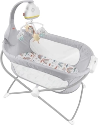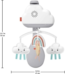 Prinesite v otroško sobo Fisher-Price Otroški vrtiljak z glasbo in nočno lučko z motivom oblakov in nežnimi barvami, ki izžarevajo sodoben dizajn in harmonijo. Ta vrtiljak ali pomirjevalec je popoln za majhne otroke, ki potrebujejo pomoč pri uspavanju.