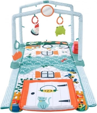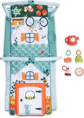 Ustvarite dojenčku varen, spodbuden prostor za vsakodnevno raziskovanje. Igralna podloga Fisher-Price 3v1 Hišica raziskovalca se zlahka prilagodi razvojni fazi otroka: od udobne igre na hrbtu z igračami nad glavico, preko krepitve vratnih in hrbtnih mišic med časom na trebuščku, do zabavnega tunela, ki motivira k plazenju in prvim poskusom kobacanja.