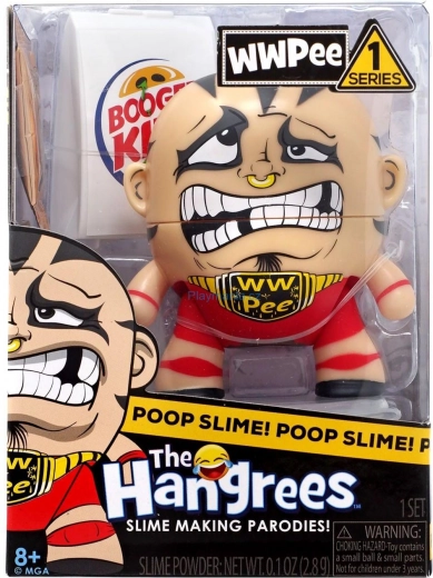 Hangrees Požeruha iz serije 1 prinaša izviren humor in ustvarjalno igro. Otrok figurico nahrani, pretrese in v hipu nastane sluz, ki jo lahko varno shranite v priloženo mini stranišče. Zabavni dodatki in namigi na znane blagovne znamke dajejo igri edinstven slog.