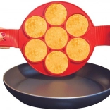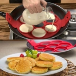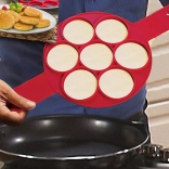 Ta večnamenski model iz živilsko varnega silikona olajša pripravo zajtrkov in hitrih večerij. Preprosto ga položite na ponev, napolnite odprtine s testom in po zapečenju s pomočjo stranskih držal obrnite – dobili boste enakomerno pečene in popolne oblike brez razlivanja testa.