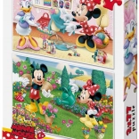 Set ponuja 2 sestavljanki po 77 koščkov s priljubljenimi liki Minnie, Mickeyja in Daisy v veselih prizorih, polnih cvetja in ustvarjanja. Čvrsti koščki iz kakovostnega kartona dobro sedejo v roko in natančno prilegajo, zato so idealni za otroke, ki se učijo potrpežljivosti in spretnosti.
