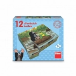 Lesene slikovne kocke z motivi Zdeňka Milerja prinašajo otrokom veselje do odkrivanja in sestavljanja. Iz 12 kock sestavite 6 različnih slik z živalicami in KRTKOM – mlajši graditelji lahko uporabijo predlogo, starejši pa to zlahka zmorejo tudi brez nje. Precizen tisk in gladki robovi zagotavljajo varno in prijetno igro.
