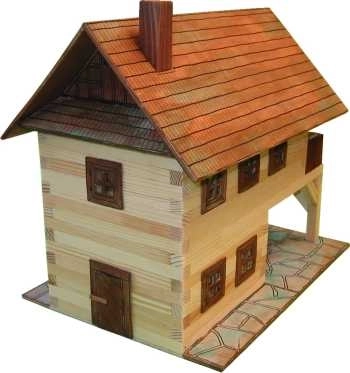 Sestavljanka temelji na lesenih letvicah 9×9 mm, dopolnjenih s papirnatimi elementi, kot so okna, vrata in strešni deli. Za lepljenje je priporočeno lepilo Herkules (ni priloženo). Priložena besedila iz zgodovine ljudske arhitekture modelu dodajo izobraževalno dimenzijo in razveselijo vse, ki imajo radi tradicijo.
