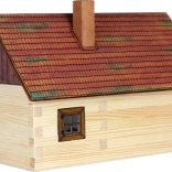 Osnovo tvorijo natančni leseni kvadratni letvici 9 × 9 mm, dopolnjeni s papirnatimi elementi, ki ustvarijo realističen videz oken, vrat in strešnih delov. Sestavljanka spodbuja fino motoriko, potrpežljivost in prostorsko predstavljivost. Za lepljenje je priporočljivo lepilo Herkules (ni priloženo).