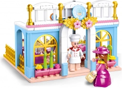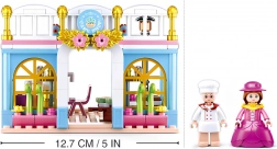 Zgradite prijetno trgovinico s torticami, mizicami in izložbo. Barvite kocke in dodatki spodbujajo ustvarjalno igro in oblikovanje lastnih zgodb iz pekarne.
