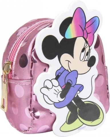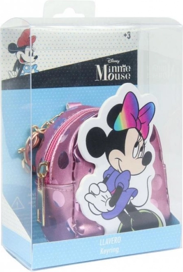 Igriv obesek za ključe z ikoničnim motivom MINNIE MOUSE združuje prisrčen dizajn in uporabnost. Mini nahrbtnik z bleščečo površino in barvno pentljo ponuja majhen prostor za shranjevanje kovancev, slušalk ali malih zakladov. Zahvaljujoč zadrgi vse ostane varno v notranjosti.