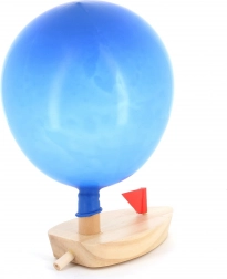 Prinesite domov igrivost s to leseno ladjico na balonasti pogon. Otroci lahko preprosto napihnejo balon, ga pritrdijo na ladjico in opazujejo, kako pluje naprej. Ta preprost, a učinkovit dizajn uči otroke o principu gibanja ter jih hkrati zabava. Idealna igrača za zabaven čas v kadi ali bazenu.