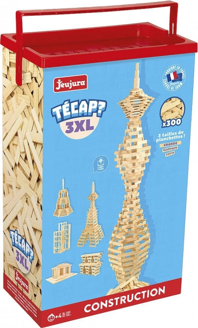 Lesena gradbena igrača JEUJURA Técap 3XL je idealna izbira za otroke, ki imajo radi prosto igro in gradnjo. Z 300 natančno obdelanimi lesenimi kosi treh velikosti lahko ustvarjajo preproste ali zahtevnejše konstrukcije, razvijajo prostorsko predstavo in potrpežljivost. Naravni material in kakovostna izdelava zagotavljata odpornost in dolgo življenjsko dobo.