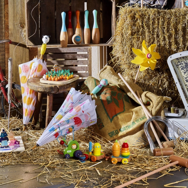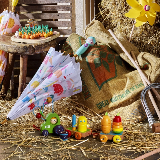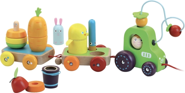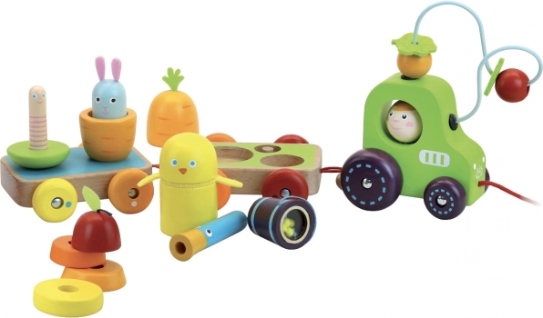 Večnamenski povlečni traktor Vilac ponuja vašim otrokom zabavno in izobraževalno doživetje. Ta lesen traktor je poln barvitih likov in presenečenj, ki razvijajo njihovo domišljijo in motoriko.