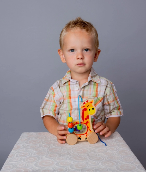 Ta večnamenska igrača v obliki žirafe zabava otroke tako pri vlečenju kot pri premikanju kroglic po kovinskih žičkah. Na igriv način razvija fino in grobo motoriko, koordinacijo oko–roka in pomaga pri prvih korakih v spoznavanju barv.