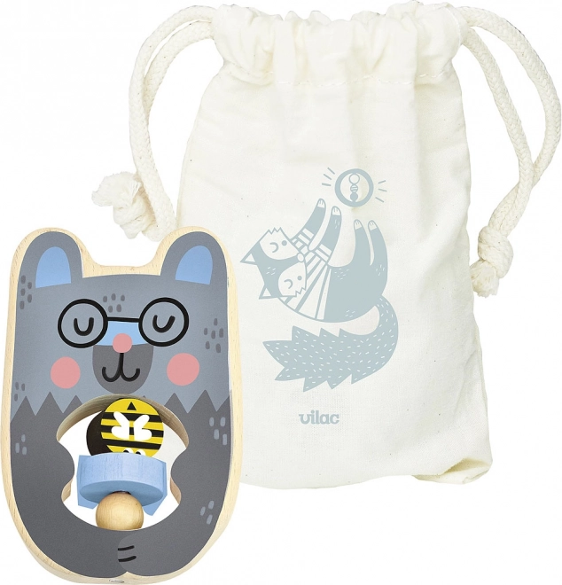 Prisrčna lesena ropotuljica z motivom medvedka ilustratorke Michelle Carlslund razveseli z nežnim zvokom treh barvnih kroglic na sredini. Je izdelana v Franciji, priložena je v tekstilni vrečki in je čudovit predlog za darilo za rojstni dan.