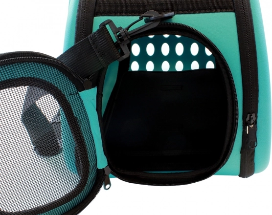Lahek in čvrst transporter iz materiala EVA se zlahka vzdržuje čist in je idealen za potovanja z avtom, javnim prevozom ali peš. Zahvaljujoč premišljenemu sistemu prezračevanja je vaš ljubljenček na varnem in ima dovolj svežega zraka. Dvojne zadrge omogočajo hitro in udobno odpiranje z obeh strani.