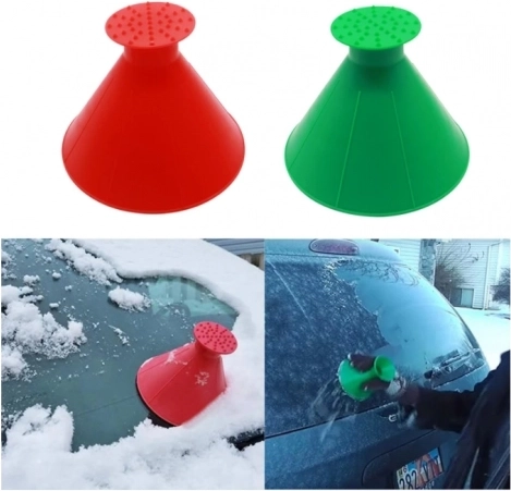 Magični strgalnik ledu 2-v-1 je pameten zimski pripomoček, ki prihrani čas in roke. Okrogla konstrukcija omogoča gladko krožno gibanje po steklu, zato led in ivje odstranite hitreje in brez napora. Manjše konice se spopadejo s poledico, večji gladki rob pa je idealen za nežno ivje ali sneg.