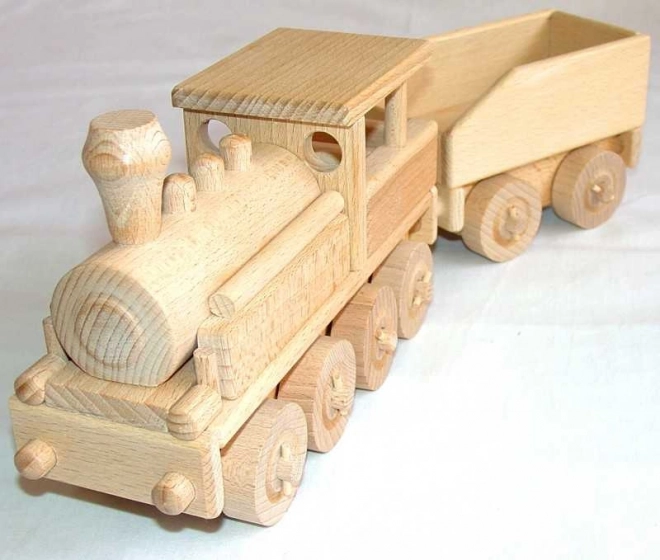 Ta leseni model parne lokomotive navduši z natančno izdelavo iz bukovega lesa in naravnim dizajnom, poudarjenim le z voskanjem in poliranjem. Lokomotiva ima premična kolesa in je zasnovana brez ostrih robov, kar zagotavlja varno igro za otroke. Zato je primerna ne le za igro doma, temveč tudi v peskovniku.