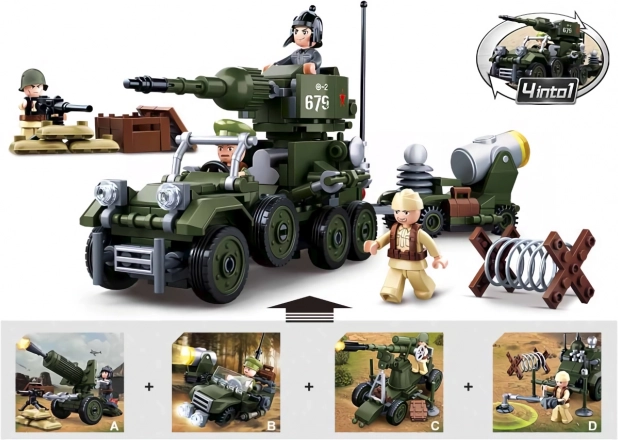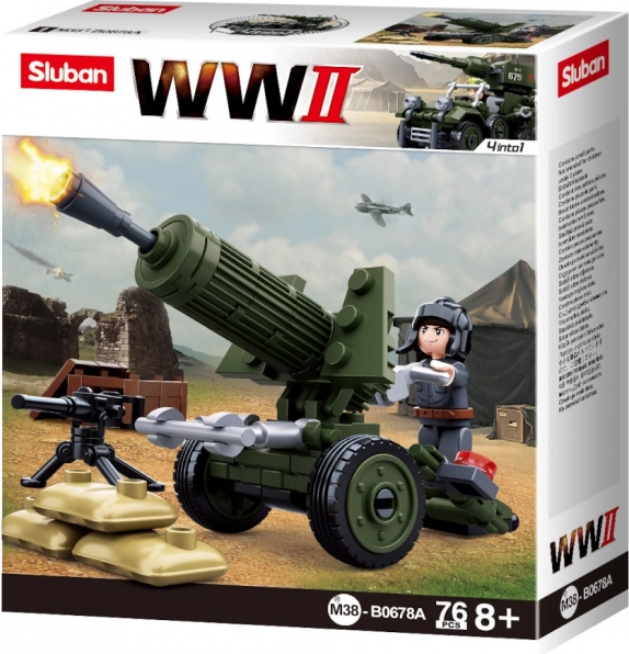 Mini gradbeni komplet bojne tehnike iz serije WWII 4v1, katerega sestavljanje omogoča izdelavo velikega celovitega modela artilerijskega vlačilca. Inovativne gradbene komplete Sluban je mogoče kombinirati s podobnimi kompleti številnih drugih pomembnih proizvajalcev. Izdelani so iz kakovostne, neoporečne in odporne ABS plastike. Vsak komplet vsebuje navodila za sestavljanje in je pakiran v pisano potiskani kartonasti škatli. Glavne lastnosti: 88 delov, 1 figurica, srednja zahtevnost, s kompletiranjem serije je mogoče sestaviti velik model, inovativne figurice z vrtljivimi in nagibnimi deli telesa, kompatibilno z gradbenimi kompleti drugih proizvajalcev