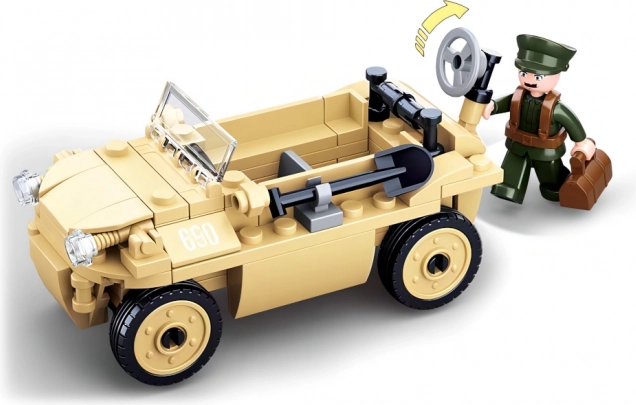 Potopite se v svet ustvarjalne zabave s to podrobno sestavljanko Sluban, ki predstavlja replike nemških vojaških vozil iz druge svetovne vojne. Sestavljanka vsebuje 106 delov in izvirno figurico z vrtljivimi in gibljivimi deli, kar omogoča igro z dodatno opremo.