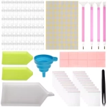 trd etui, 60 kozarčkov za kamenčke, 10 voščenih kvadratkov, 3 razvrščevalni pladnji (različne velikosti), silikonski zložljivi lijak, 4 aplikatorji (različne velikosti), pinceta, vrečke z zadrgo, 1 izravnalna lopatica