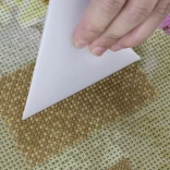 Za udobno delo ne manjkajo 4 aplikatorji različnih velikosti, natančna pinceta, 3 razvrščevalni pladnji in silikonski zložljivi lijak za enostavno presipanje kamenčkov brez nereda. Voščeni kvadratki zagotavljajo zanesljiv zajem kamenčkov, izravnalna lopatica pa pomaga do popolnoma ravnega rezultata.