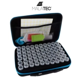 Vzdržljiv etui z zadrgo in ročajem ščiti opremo ter drži kozarčke in dodatke pregledno organizirane – idealno za potovanja in domačo delavnico.