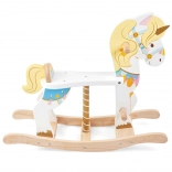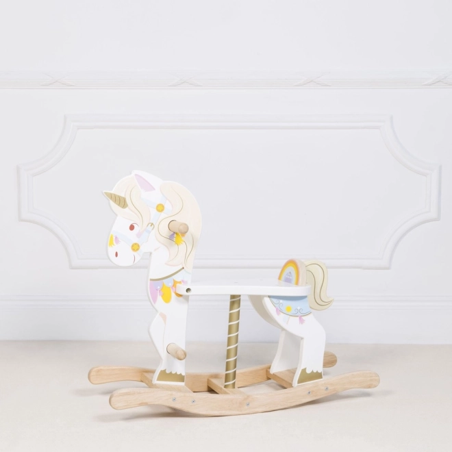 Gugalni samorog LE TOY VAN iz kolekcije Petilou je klasična igrača v sodobni preobleki. Zahvaljujoč čvrsti leseni osnovi in premišljeni ergonomiji podpira naravno guganje ter razvija koordinacijo, ravnotežje in samozavest v gibanju. Bogate barvne podrobnosti, zlati rog in prijazen izraz spodbujajo domišljijo in veselje do igre.